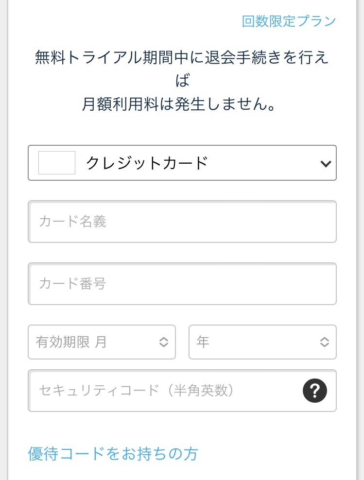 無料体験でもクレジットカード情報が必要です。