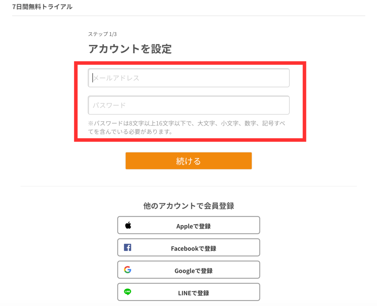 メールアドレスまたはSNSアカウントで登録。