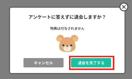 画面の案内に沿って進み、「退会を完了する」を選択